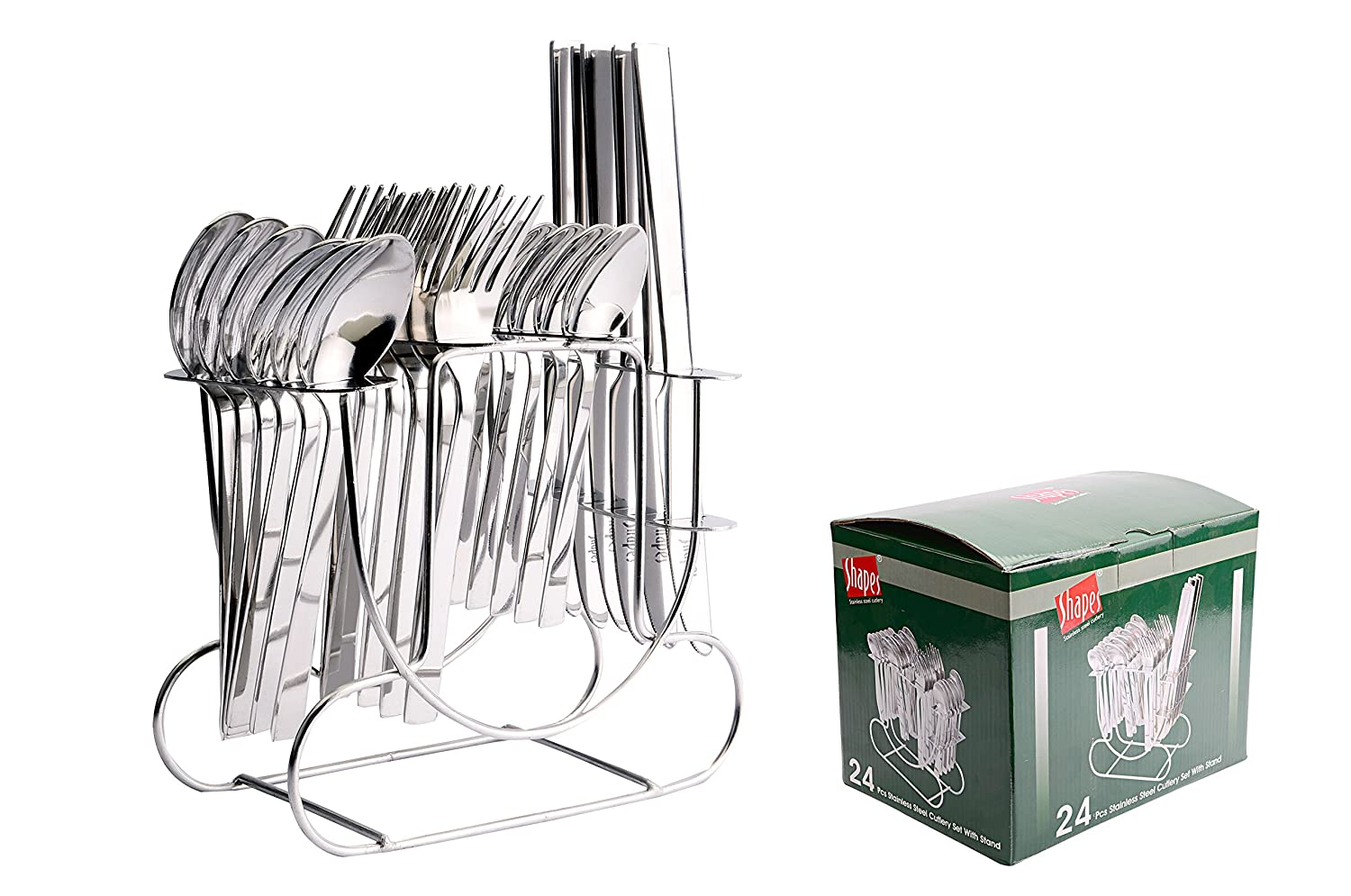 Stainless Steel Cutlery Set Of Spoons, Forks and Knifes with Stand Set of 24 Psc